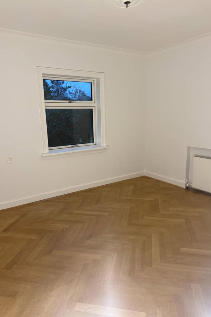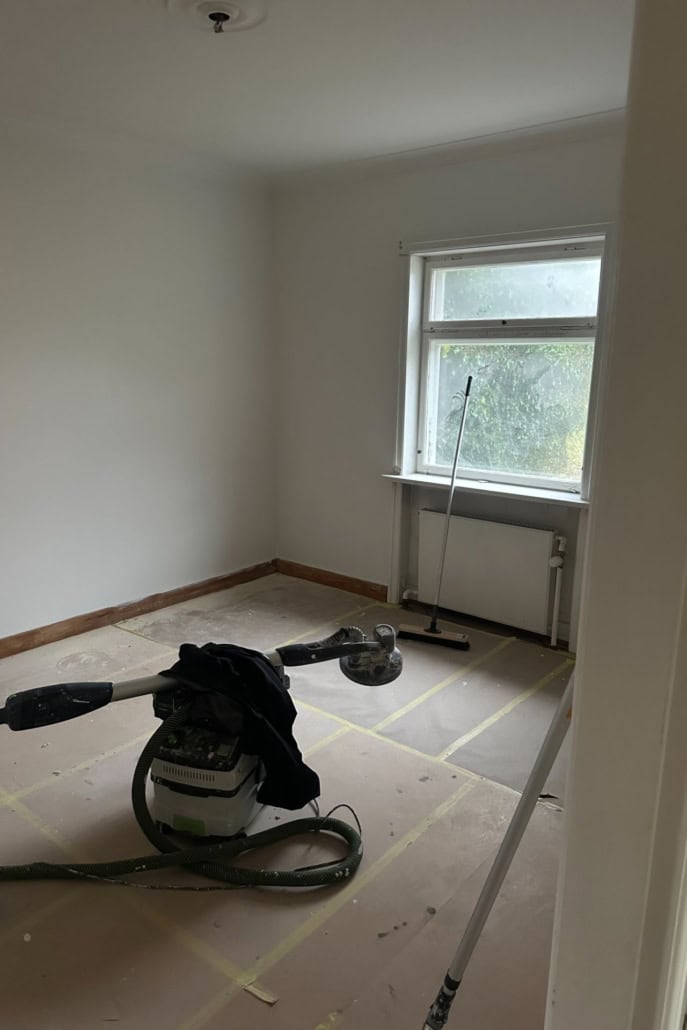 I resten af boligen blev vinduer udskiftet, eksisterende brugsvandsrør med asbest blev fjernet og erstattet med moderne, energieffektive løsninger, og gulvene blev slebet og behandlet, så boligens originale karakter blev bevaret med et nyt og fornyet udtryk.