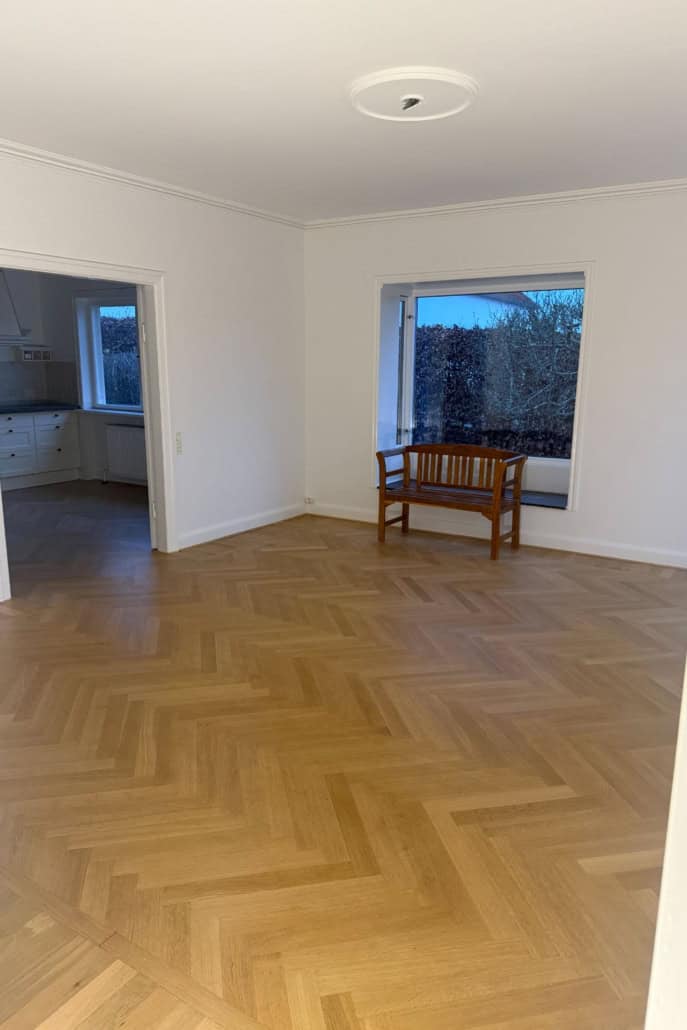 Projektet omfattede desuden malerbehandling, opretning af overflader samt diverse tømrer- og VVS-arbejder, så hele boligen fremstod som ny – både teknisk og visuelt. Projektet blev afleveret til en meget tilfreds bygherre.